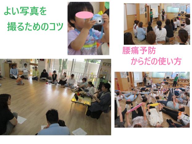 午前中は保護者の方も一緒に参加していただき「スマホ・カメラで撮る子ども写真講座」をしました。こども専門カメラマン【アノヒノフォト・濱本由麻先生】にお越しいただき写真を上手に取るコツや子どもの活き活きとした表情を撮る声掛けなど、すぐに保育に取り入れられる内容でした。早速実践してみようと思います。ご参加いただいた保護者の皆さまありがとうございました。