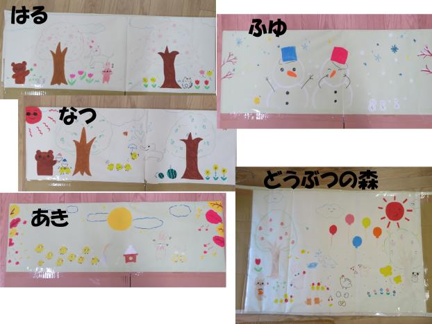 動物がたくさんいる森の道、春夏秋冬4つの景色の道をみんなで手を繫いで歩きました。