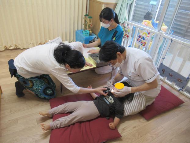 嘱託医のにしき歯科の錦先生に来ていただき歯科健診をしました。子どもたちは緊張していましたが、大きく口を開けてがんばりました!