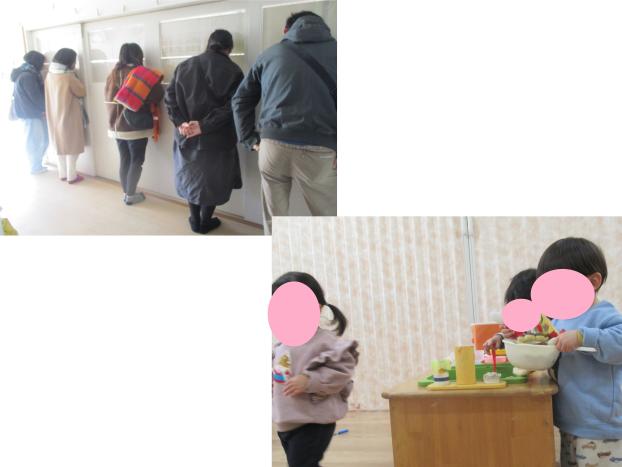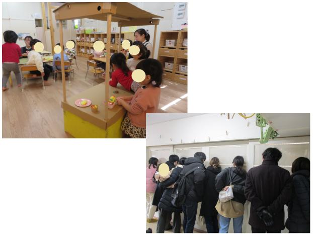 今日はくまグループの参観日でした。粘土遊びをしている様子をこっそり保護者の方に覗いてもらいました。アイスを作ったり、カップケーキを作ったりして屋台に並べて「いらっしゃいませ~」と子ども達の楽しいやりとりをみてもらうことができたかと思います。給食もしっかり食べて保育園で普段過ごしている姿が見せられて嬉しそうな子ども達でした☆