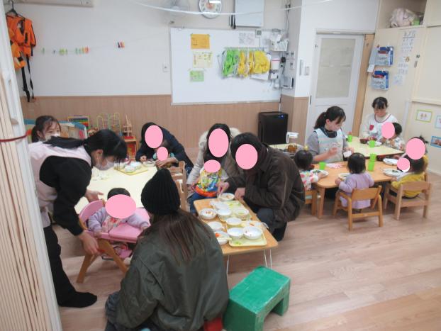 給食ではおかあさんに会えてうれしそうなほし組さんでした。