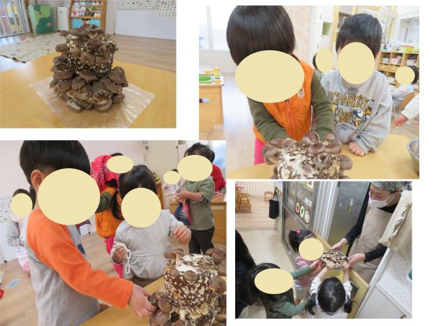 「キノコの匂いがするー」と言って収穫を喜んでいた子ども達。