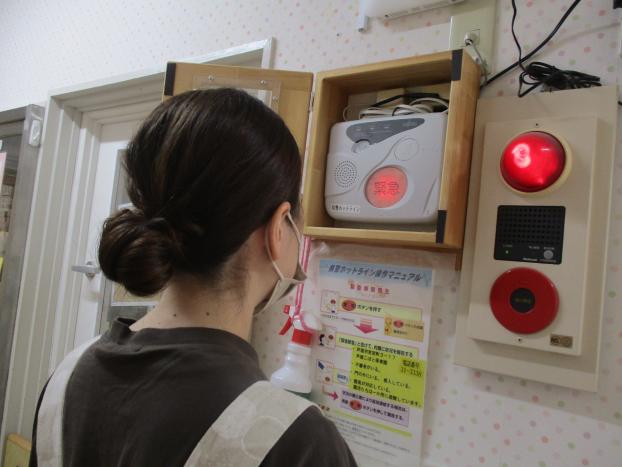緊急時は、ボタン一つで警察に通報できる「県警ホットライン」という機器が園に2台あります。いざというときに使えるように職員が通報訓練をしました。