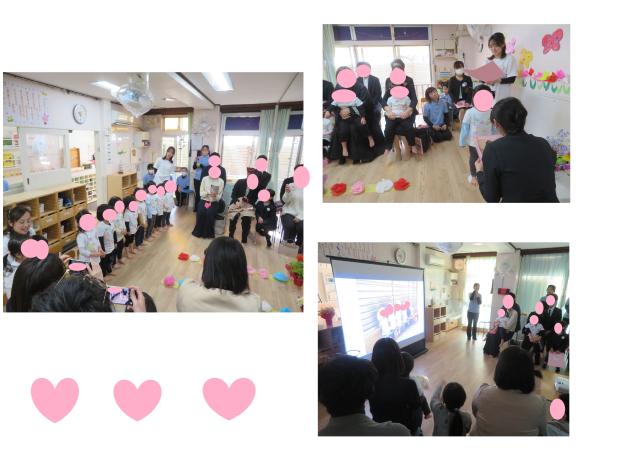 入園当初の写真の授与をした後は1年の思い出のDVDを見て「○○ちゃん写ってる!」等と嬉しそうにしていました。