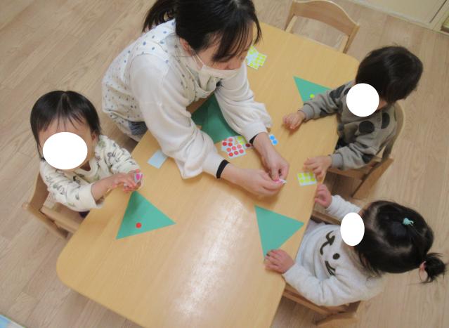 保育士からの出し物は形のクイズとギターによるクリスマスソングのプレゼント☆