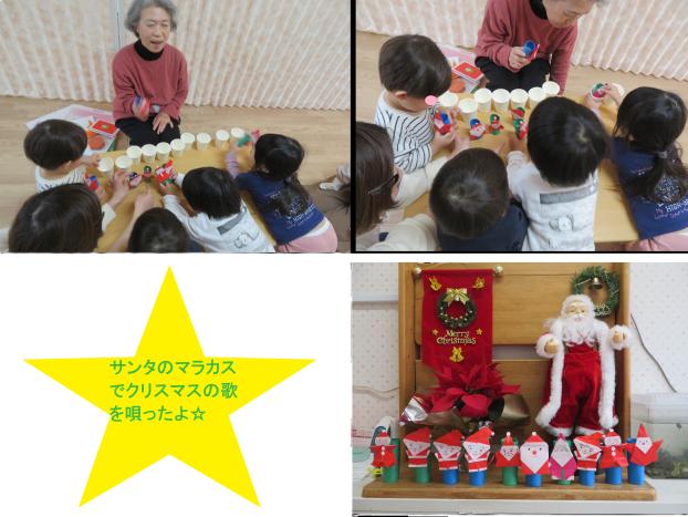 クリスマスの絵本の時には、手作りのサンタのマラカスが登場!!みんなでシャカシャカ音を鳴らしながらクリスマスの歌を唄って楽しみました♪