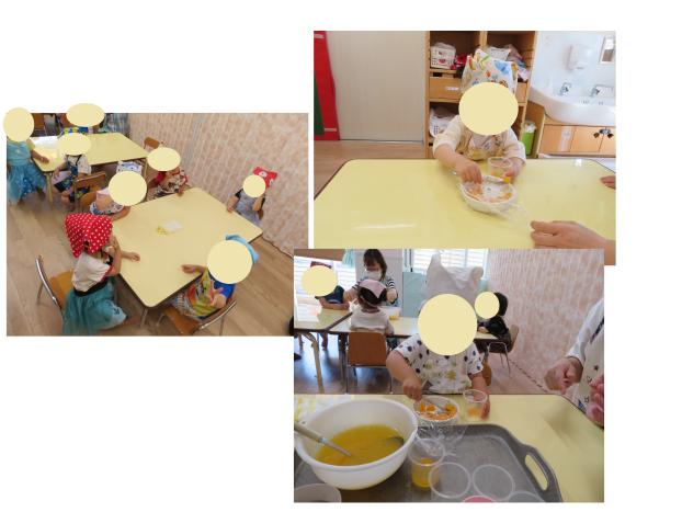 まとまったら、一口サイズにちぎって丸めていきました。とっても上手にそれぞれ丸めて楽しんでいましたよ。おやつに食べるのが楽しみです!