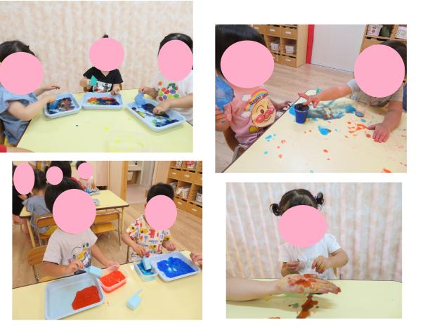 子どもたちは不思議そうな表情をしながらも触ったり、体に塗ってみたりと思い思いに楽しむ姿が見られました☆