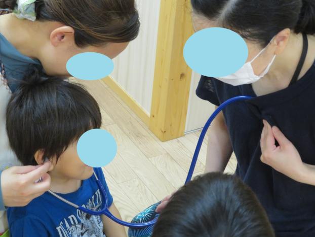 聴診器で心臓の音を聴いてもらう体験をしました。