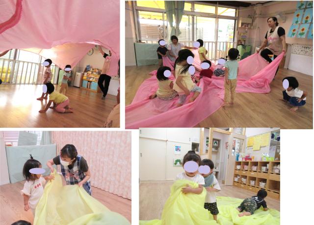 シフォン布を使ってみんな夢中にあそびました。