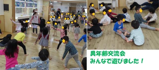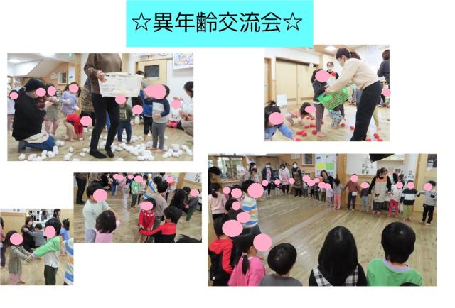 今日は2~5歳児の異年齢交流でした。みんなでリズム遊びやソーラン節、各クラスの歌披露をしました。