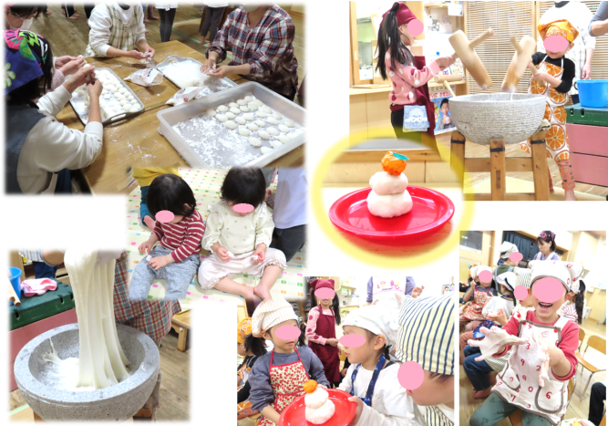 たくさん触った後はみんなで鏡餅を作って飾りました。