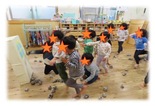 他のクラスは、保育室にいる時でしたが、すぐに室内の真ん中に集まることができました。