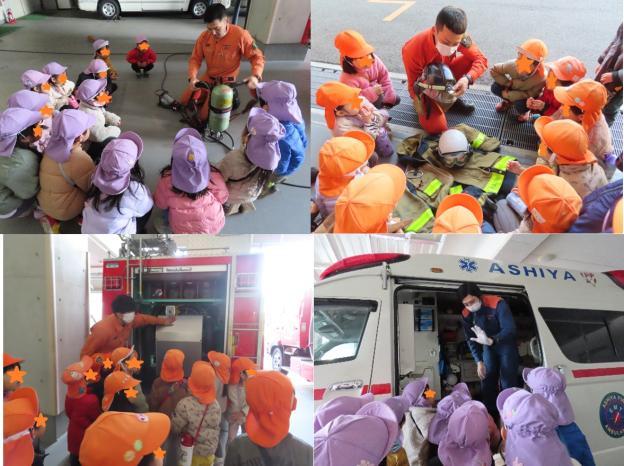 すいか組とみかん組で芦屋消防署へ見学に行きました。