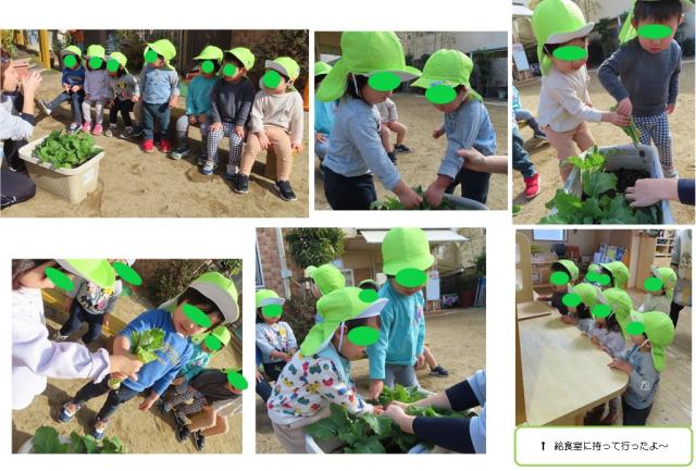 とれたカブは給食室に持っていき、給食の先生に渡しました。