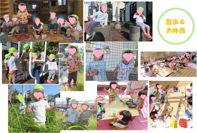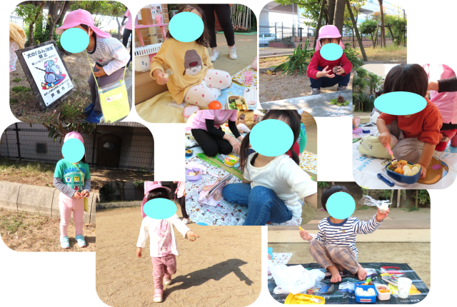 お弁当の時間には、「ままがつくってくれたの!」、「〇〇ちゃんがすきなものがいっぱいだよ!」と楽しく、美味しくお弁当を食べました。お外でのお弁当が楽しかったようで「あしたもおべんとうかな?」とニコニコ笑顔でお話する姿は可愛かったですよ。