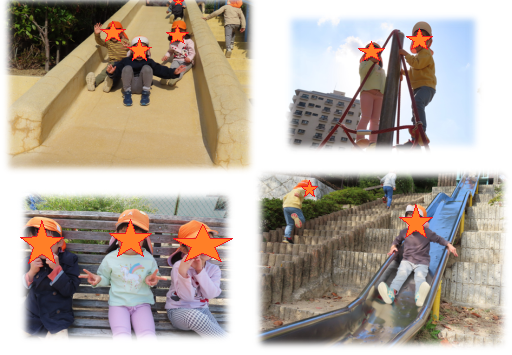 すべり台に上って何度もすべって遊んだり、広場を走ったりしてたくさん遊びました。