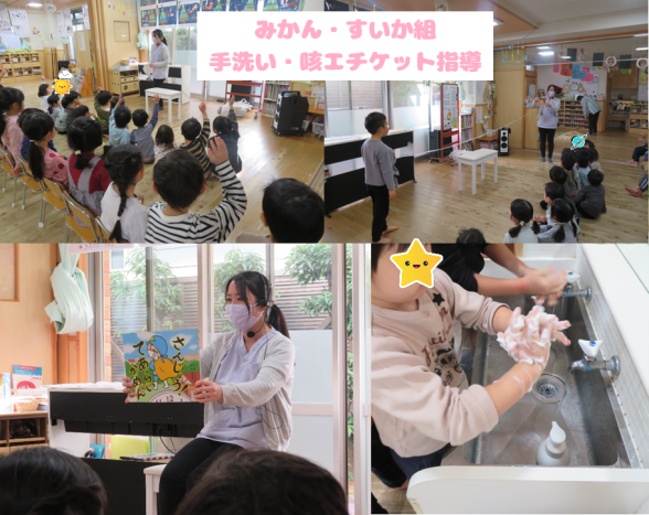 みかん・すいか組 手洗い・咳エチケットの指導をしました☆