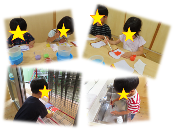 初めはスポンジ、次は指、次は手の平と、どんどん大胆になってくる子どもたち。