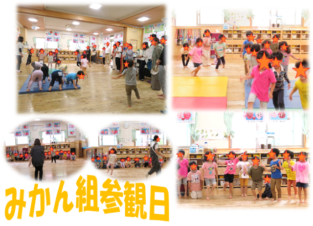 朝の会や律動、親子での触れ合い遊び等楽しみました。普段の様子をお母さん、お父さんに見てもらい緊張している子もいましたがとても嬉しそうでした!