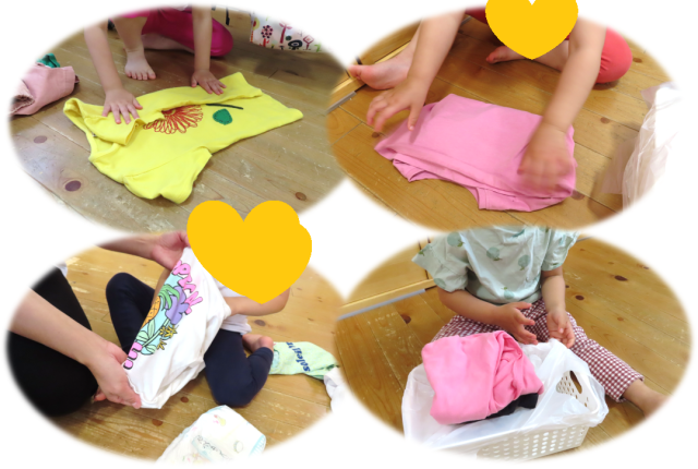 一つ服が畳める度に、「先生!見て!綺麗に畳めたよ☆」と