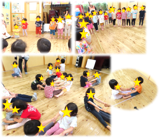 リズムあそびやふれあい遊びで体を動かしたりと、