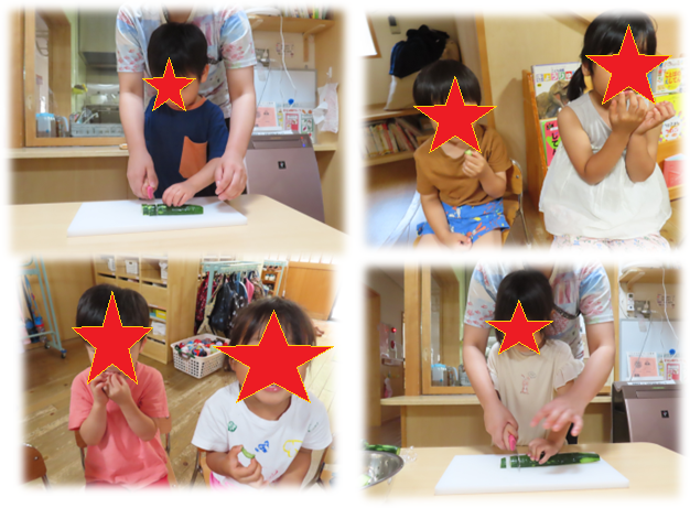 きゅうり、すいか、じゃがいも、とうもろこし、トマト、沢山の野菜が元気に育っています!来週には、畑で収穫したジャガイモでカレークッキングを予定しています。美味しいカレーを作ろうと、今から楽しみにしている子ども達です(*^^*)
