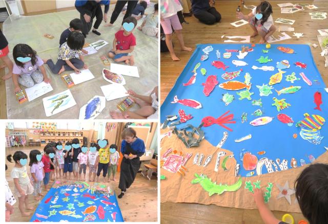 造形遊びの先生にきていただき、みんなで海の世界を作りました