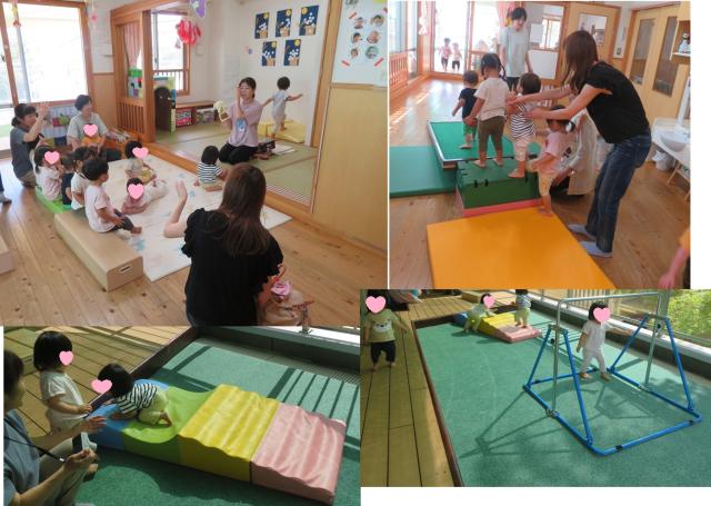 お話を聞いたり、お歌を歌った後は、テラスとお部屋を使ってサーキットを楽しみましたよ。