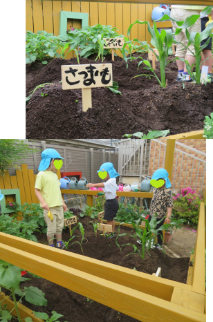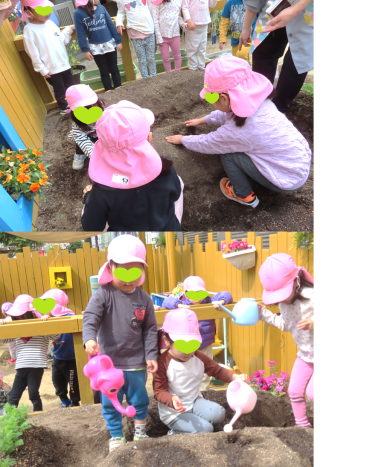 今日はさつま芋の苗を植えました。畝を作っていると「なにしてるの~」と興味津々の子ども達!畝作りを手伝ってくれましたよ(*^^*)