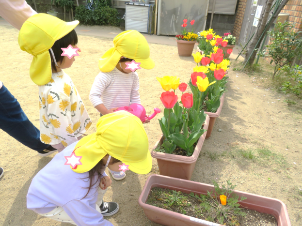 園庭に、沢山のチューリップが咲き誇りました。