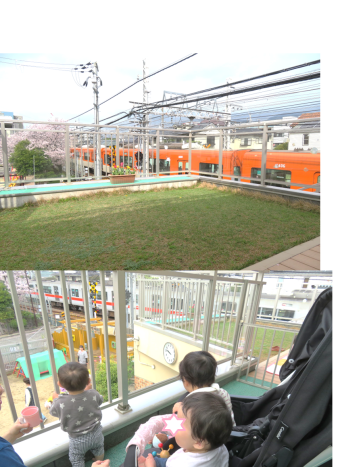 乳児テラスは、日当たりも良く、阪神電車もよく見えます!