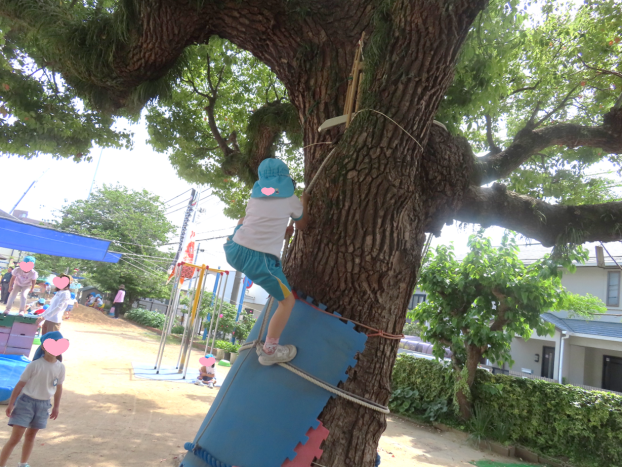 樹齢100年ほどのくすのきが園庭にあって、ロープで登らせてもらいました。
