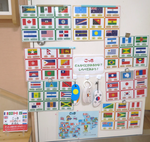 絵本や国旗カードを使ってどんどん名前を覚えていますよ。