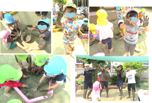 子ども達も、先生たちも、泥の感触をたっぷりと味わいました。