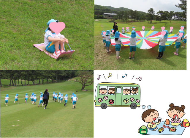今日は5歳児すいか組さんが、芦屋カンツリー俱楽部のゴルフ場へバス遠足に行きました。