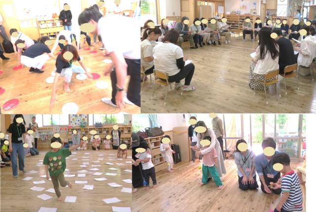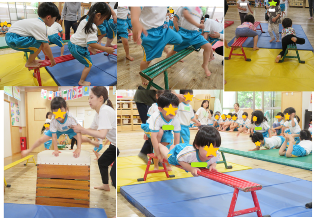 今日は安田式体育遊びの小西先生が来て、2歳から5歳クラスのみんなは身体をたくさん使って運動しました。体育遊びに初めは緊張していた子も、挑戦してできることがわかると繰り返しやっていました。次の安田式体育遊びも楽しみにしたいと思います。