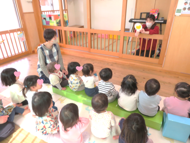 今月は0歳児さくらんぼ組さんが歌のプレゼントをしてくれました。と~ても可愛いしぐさにみんなメロメロ♡でした