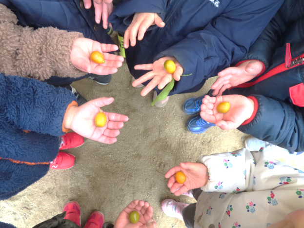 2歳児もも組が、園庭のキンカンを収穫しました!