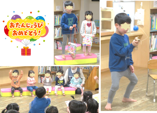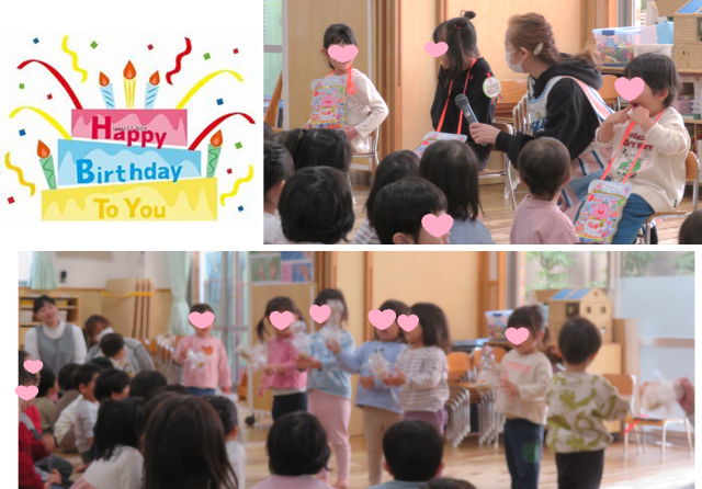 今日は2月生まれのお誕生日会がありました。3名のお友達がお誕生日を迎えましたよ。