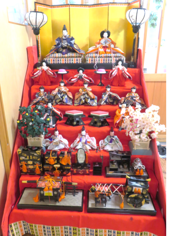 とても華やかで、優雅なお雛様たちです。玄関ホールが明るくなりました(*^^*)