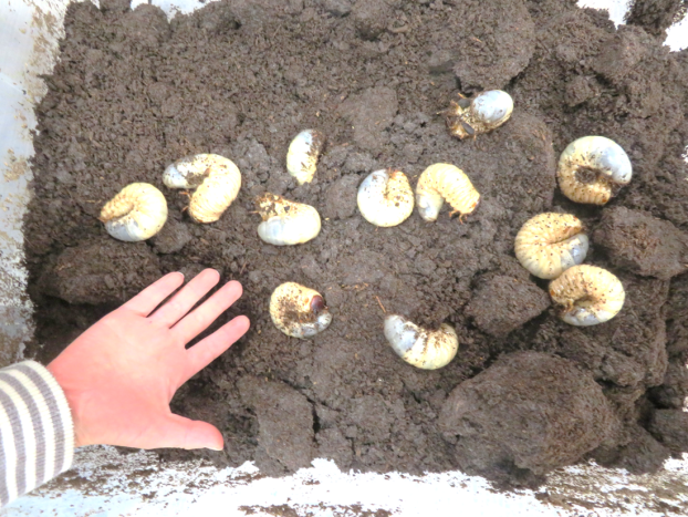 すいか組が育てていたカブトムシの幼虫です!まるまる太ってとっても元気です。