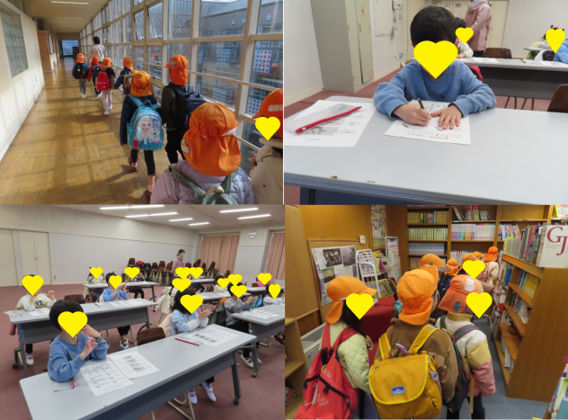4月からは小学生のすいか組のお友だち。小学校の中を案内してもらったり、鉛筆の持ち方や使い方を教えてもらいました。
