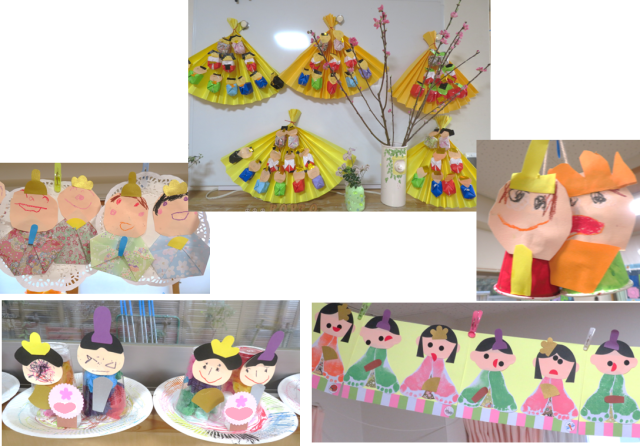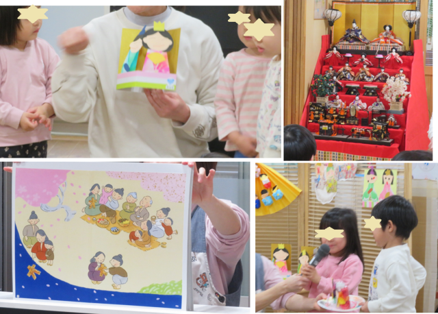 紙芝居をみたり、歌を唄ったり、クラスで作ったひな人形の紹介をしました。