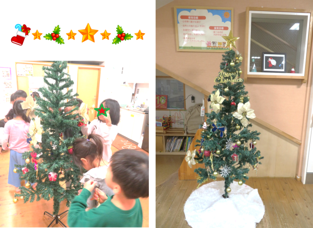 5歳児すいか組がクリスマスツリーを飾ってくれました。