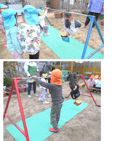 今日の夕方は、4.5歳児クラスが鉄棒遊びをしていました。