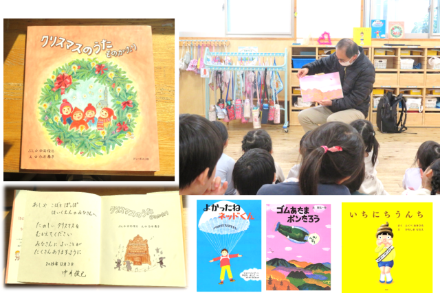 そして、最後には中井先生がおはなしをつくられた「クリスマスのうたものがたり」という絵本を音楽と共にきかせてもらい、そして、最後に子どもたちにその絵本をプレゼントしてくださいました。素敵なクリスマスプレゼントありがとうございました!