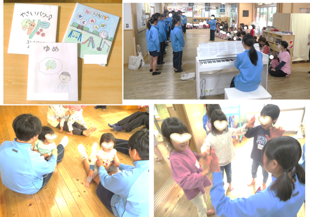 最後は、1階に全員集まり、歌の交換プレゼント会をしました♪園児たちは「さんぽ」を元気よく歌い、「とても上手だったね~」と褒めてもらいました(*^^*)
