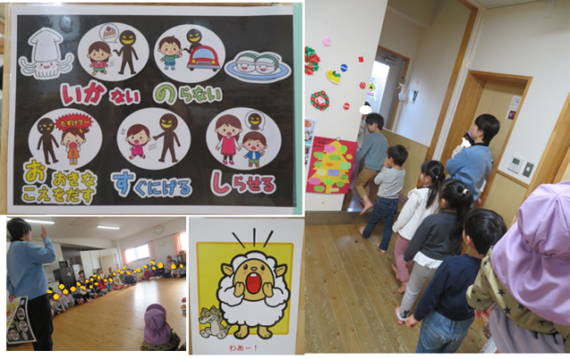3階では、「いか、の、お、す、し」の合言葉をみんなで確認しました。家庭でもぜひ、子どもたちと確認してみてください。