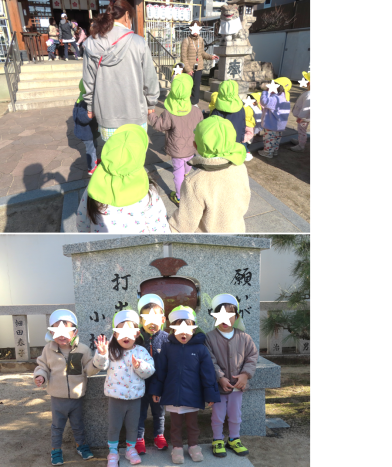 今日は、寒い1日でしたが全クラス初詣にいきました。